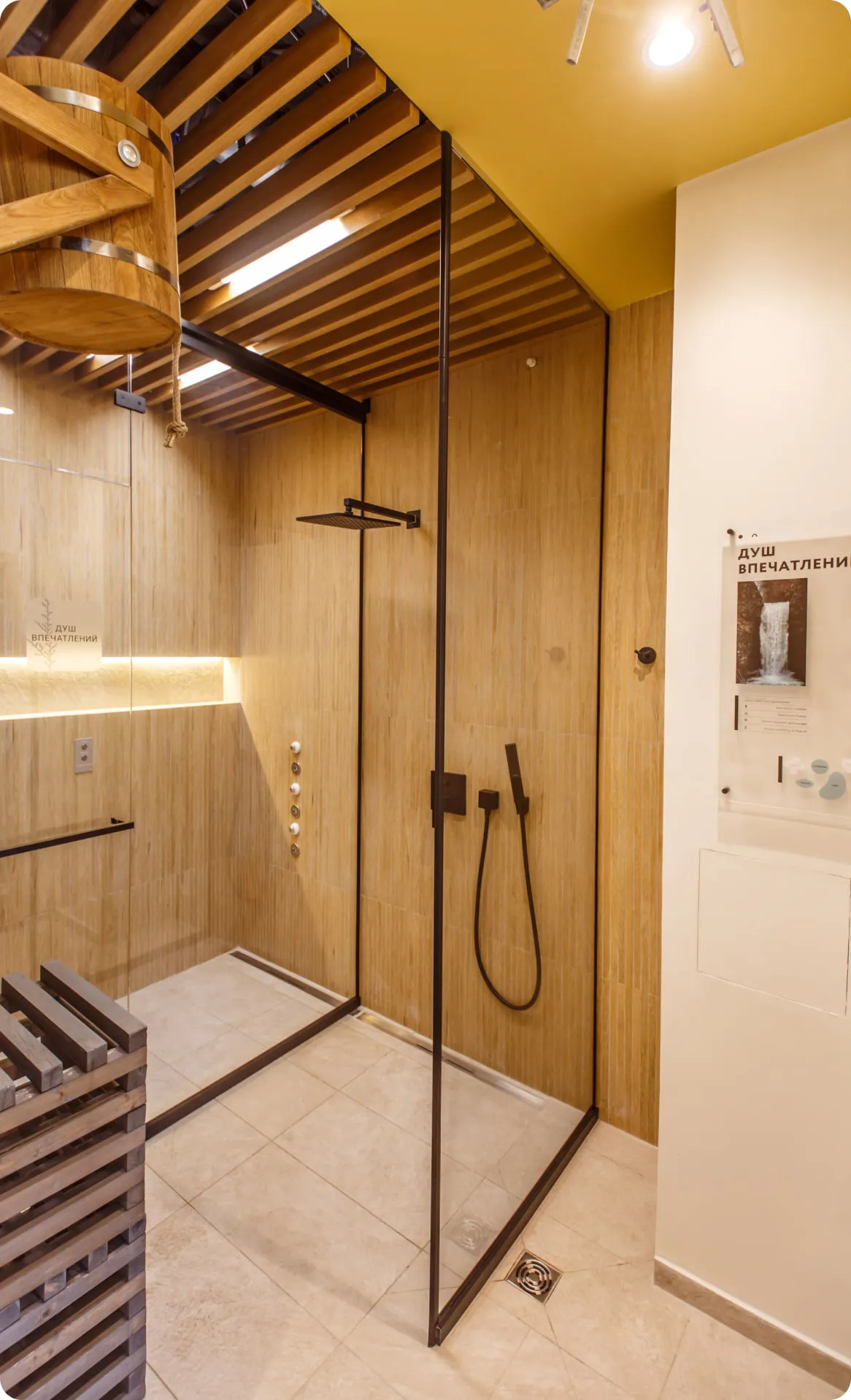Душ впечатлений приведет Вашу кожу и весь организм в тонус. Рассчитан на 1 человека, время сеанса до — 5 минут, контраст температур: от 10 до 45 градусов.